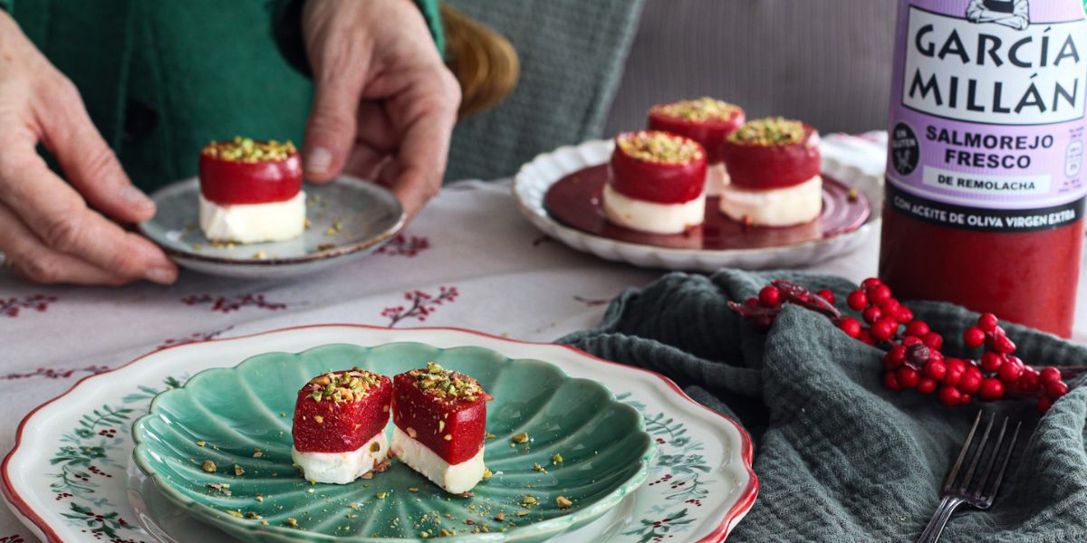 En García Millán, creemos que la tradición no está reñida con la innovación. Con esta receta, transformamos nuestro Salmorejo de Remolacha —famoso por su color vibrante y su equilibrio perfecto— en un bocado gourmet. Estos bombones son el aperitivo ideal para sorprender: una textura delicada que se funde en el paladar, contrastada con la cremosidad del queso de cabra y el toque crujiente del pistacho.