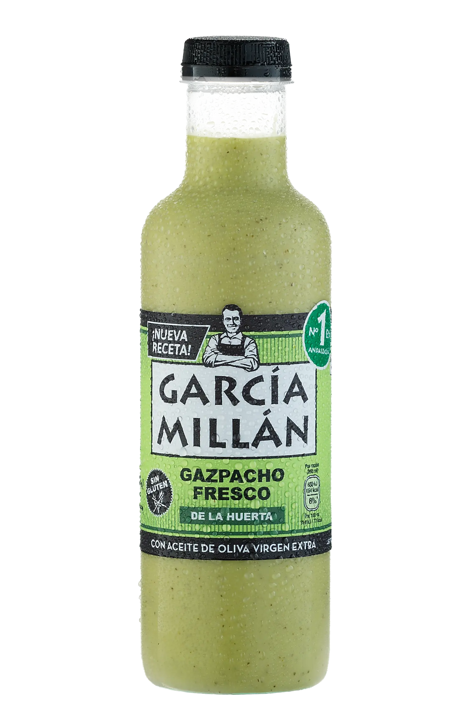 Gazpacho afrutado que fusiona 2 sabores muy característicos del campo andaluz: el mejor tomate y fresón de Huelva, recogido en su punto óptimo de maduración.